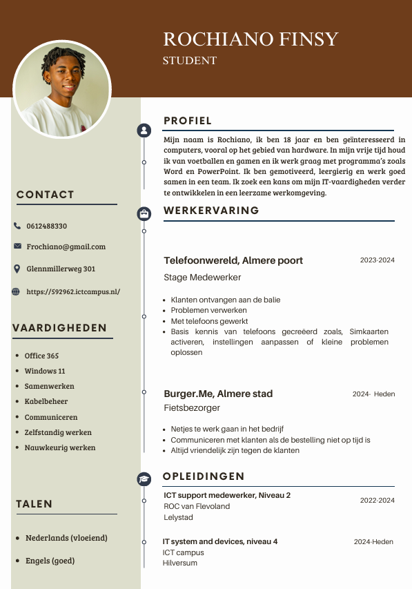 Mijn cv geeft een overzicht van mijn ervaring en vaardigheden, waar ik heb gewerkt en waar ik nu mee bezig ben. Het is een duidelijk overzicht over al mijn werk/school ervaring.